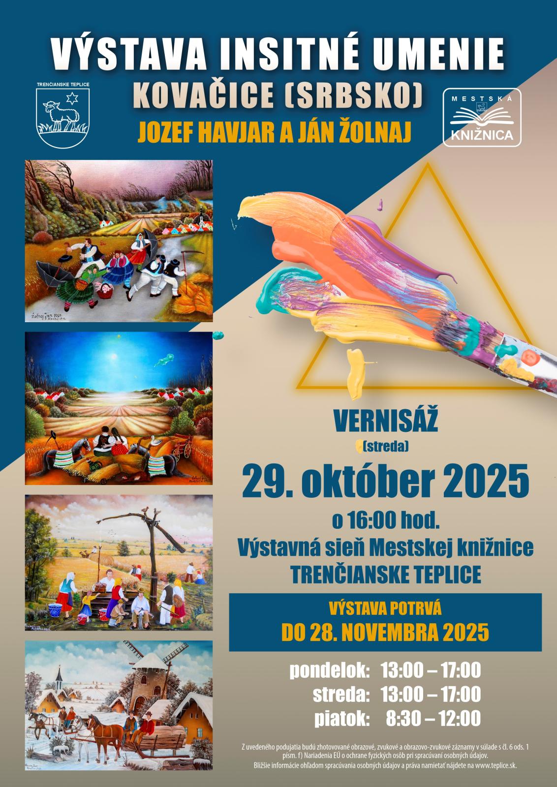 Do mesta totiž zavítala výstava insitného umenia zo srbského mesta Kovačica, ktorá predstavila tvorbu dvoch významných insitných maliarov – Jozefa Havjara a Jána Žolnaja. „V roku 1955 vznikla v Kovačici prvá dedinská galéria, ktorá si dodnes uchovala tradíciu prezentovania svojich členov a obohacuje fond naivného umenia. Títo umelci sú už treťou generáciou maliarov, ktorí vo svojich dielach zobrazujú život na dedine, ľudové zvyky, kroje, remeslá a dobytkárstvo,“ priblížila kurátorka Alena Rezková, ktorá autorov na Slovensku zastupuje. Vernisáže sa zúčastnil aj predseda srbsko-slovenského spolku na Slovensku Rajko Salihbegovič, ktorý zdôraznil význam kultúrneho prepojenia oboch krajín.